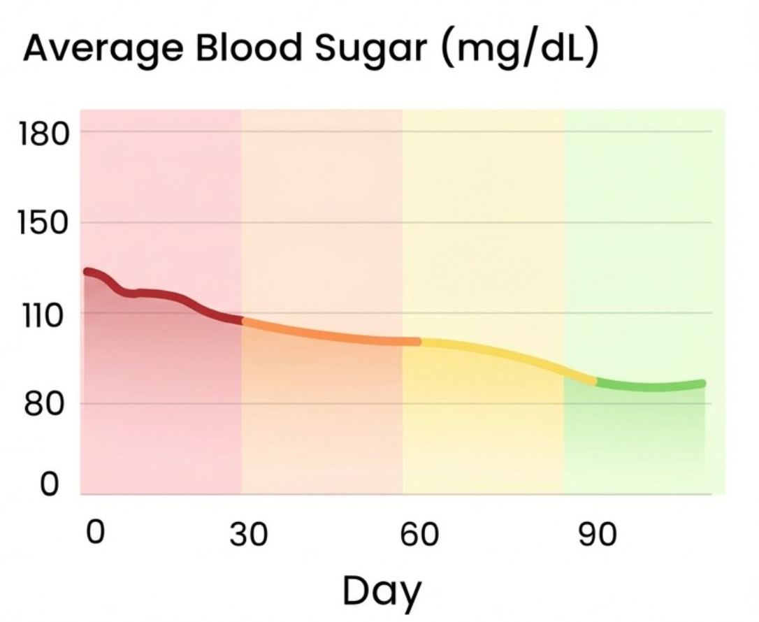 This isn't a temporary fix. Nuvani® resets your metabolism at the cellular level for lasting blood sugar control. Here's your 90-day transformation timeline: